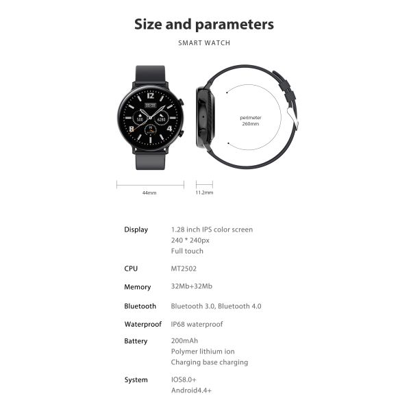 Feature : Alarm clock, Stopwatch, Do not disturb mode, Gesture awakening, Find your mobile phone, Music control, Photo control, etc